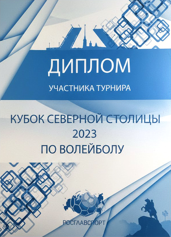Диплом участника турнира по волейболу Кубок северной столицы 2023